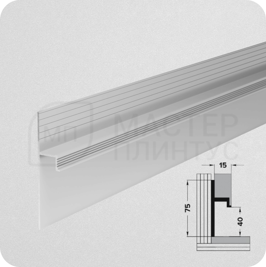 Скрытый плинтус Плт 75 серебро матовое от бренда «Лука» — это элегантное и практичное решение для современных интерьеров. Этот плинтус создаёт зазор между полом и стеной, что визуально придаёт помещению объем и эффект парящей стены.