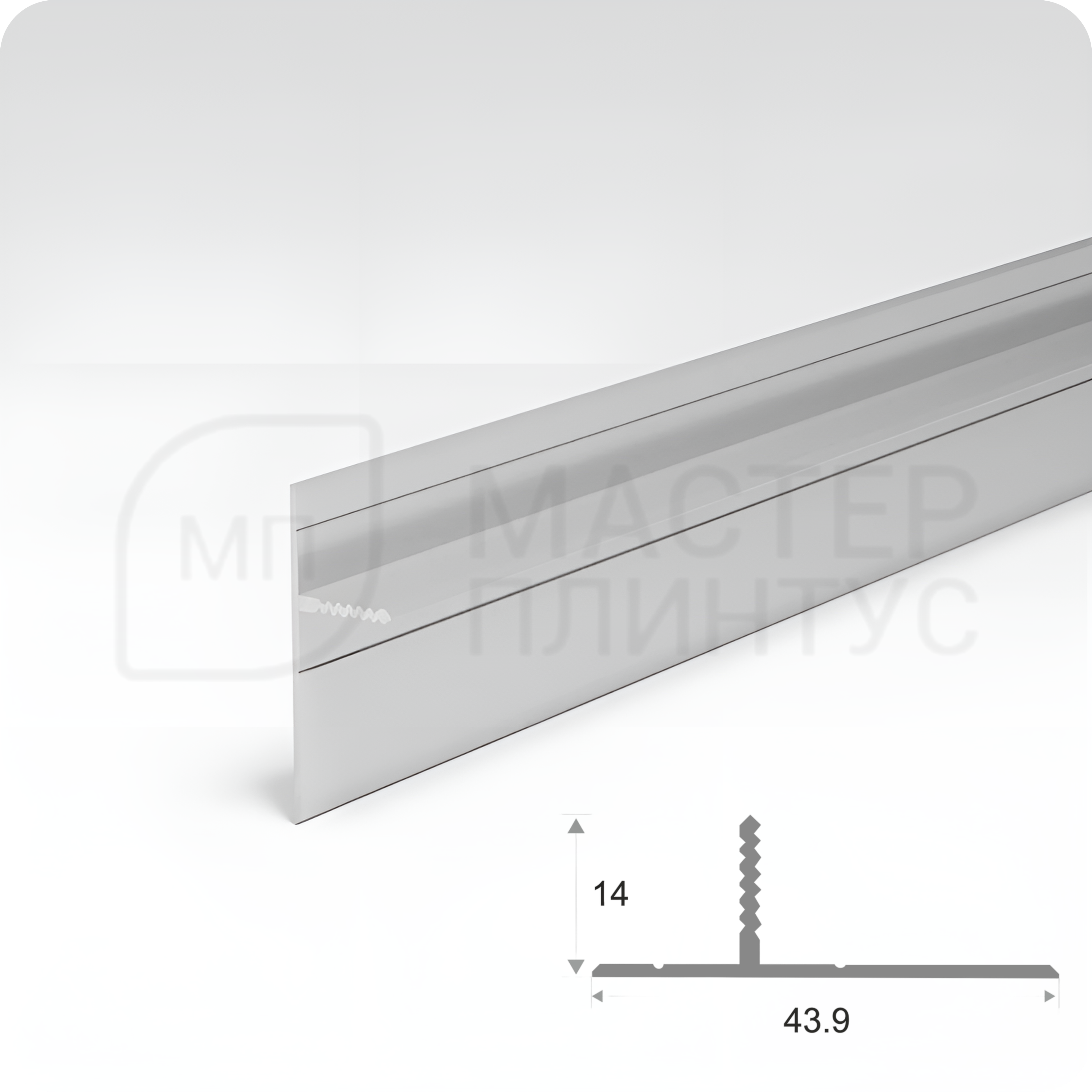 Теневой плинтус скрытого монтажа ПО-146 — это алюминиевый профиль с серебристым матовым покрытием.