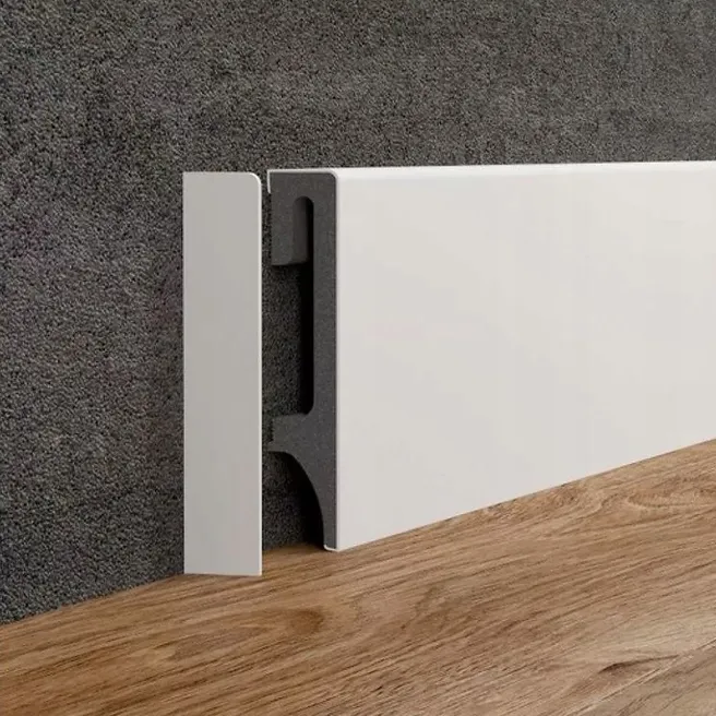 - Алюминиевые плинтусы отличаются стильным дизайном и прочностью.